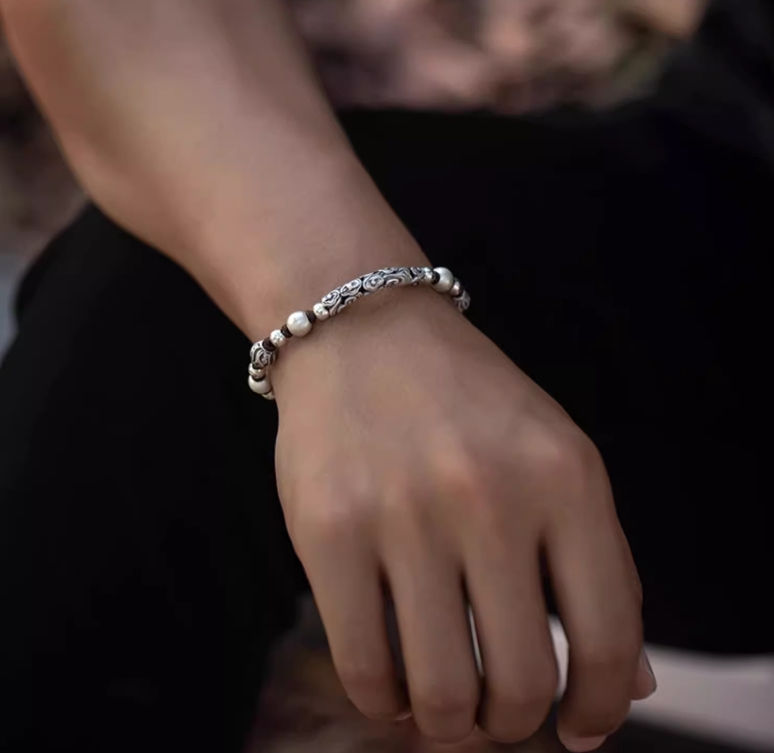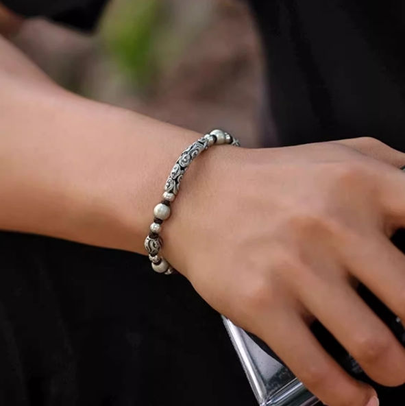 Silver auspicious cloud beaded bracelet